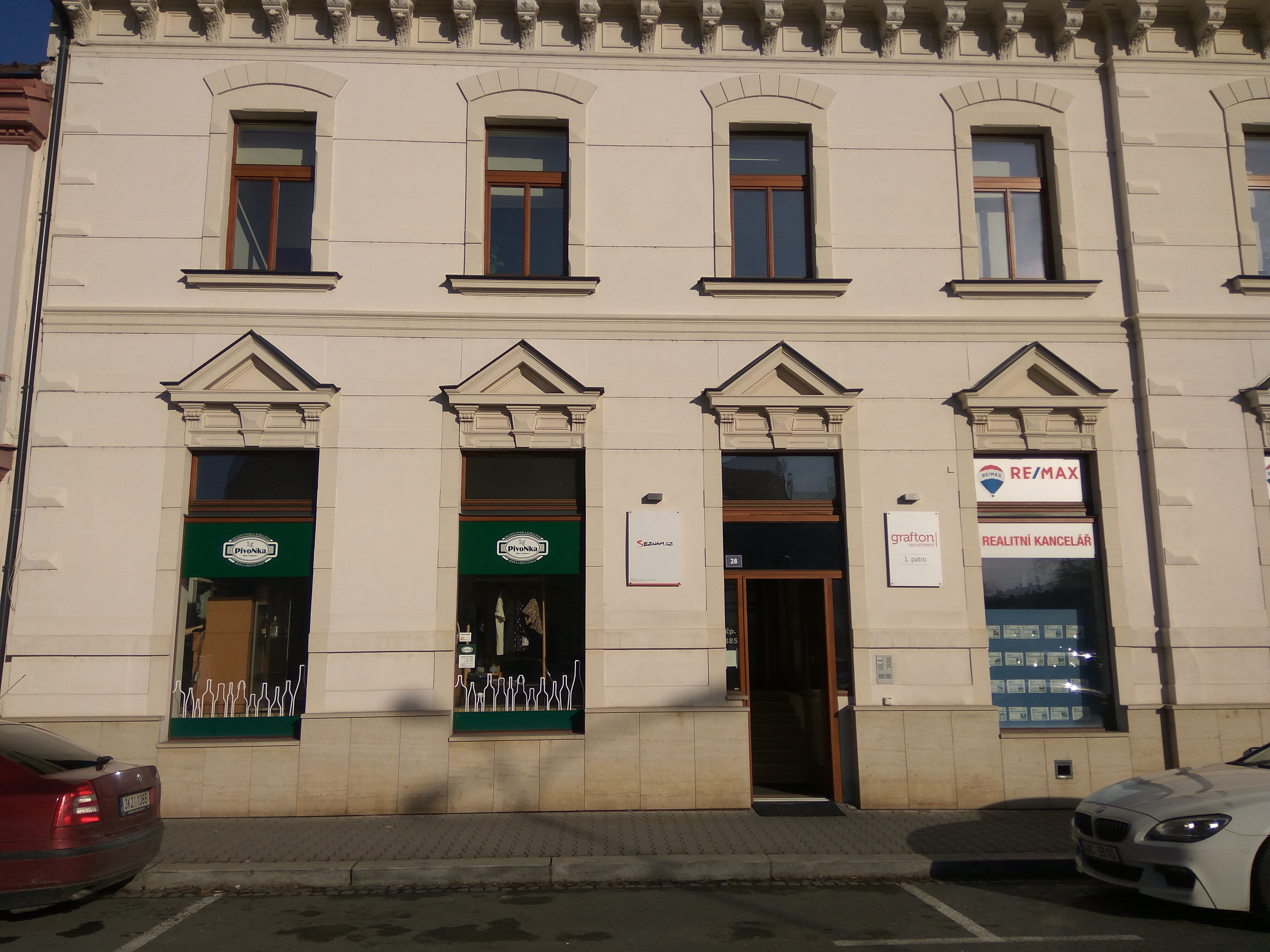 Spodní část výlohy bych chtěl zachovat, takže logo by mělo být kompatibilní. Mělo by být dostatečně výrazné, aby bylo vidět přes ulici. U současného loga tomu tak není.
